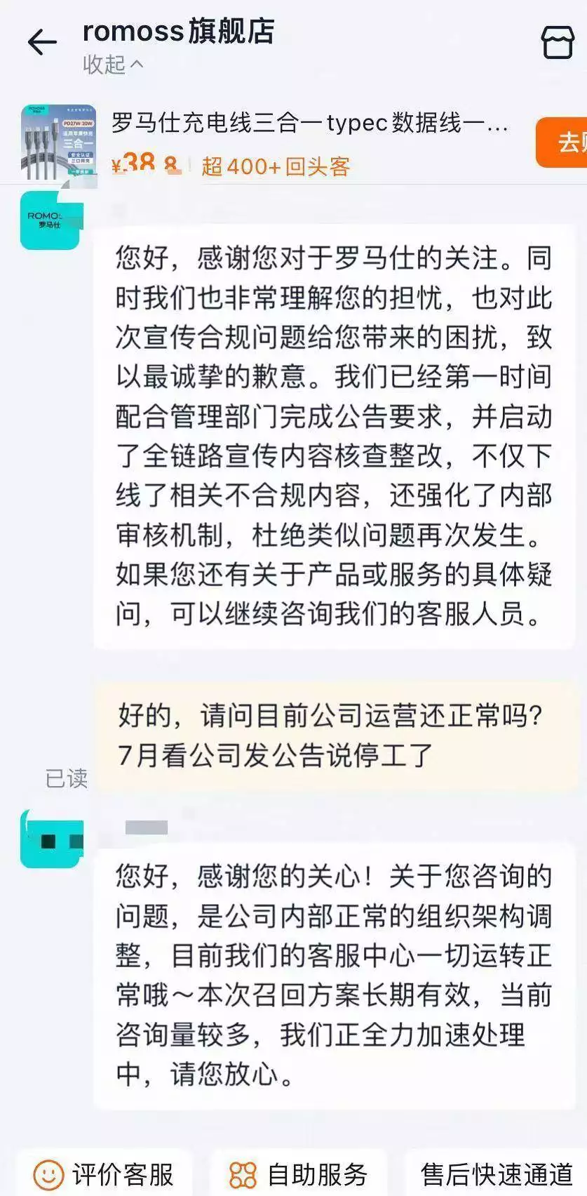 罗马仕客服回应